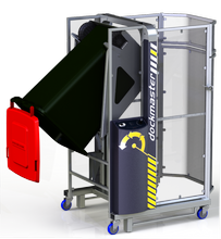 The Dockmaster was designed with a specific task in mind - safely tipping wheelie bins and drums from a raised loading dock. In many operations this is currently done by hand, which is difficult, slow and dangerous. The Dockmaster completes the process in seconds and is fully compliant with stringent new safety requirements. The Dockmaster is based on the proven design of the Simpro Dumpmaster, but with unique features. The tipping mechanism inverts bins as low to the ground as possible, at just 700mm, while still keeping the weight within the footprint of the machine. To allow operating near platform edges the Dockmaster is fitted with safety feet, just behind the wheels. These catch the machine if it is rolled over the edge, instantly preventing further movement. The Dockmaster is built to the same rugged specifications as the Dumpmaster, including the steel frame, powerpack and control system. It will effortlessly tip most types of wheelie bin at weights up to 250kg, and is designed to withstand many years of operation indoors or outdoors. OPTIONS The Dockmaster is compatible with most Dumpmaster options and accessories, including: